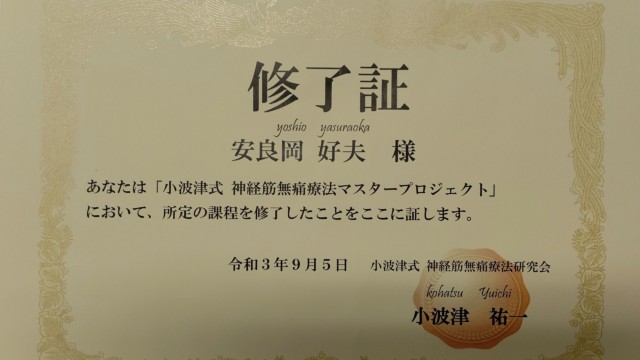 9月5日(日曜) 小波津式 神経筋無痛療法マスタープロジェクトが修了しました。