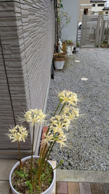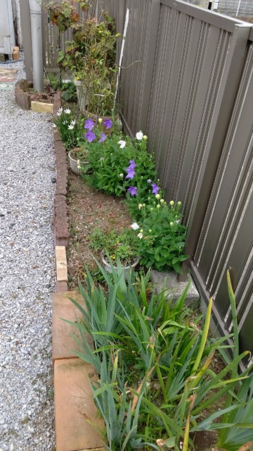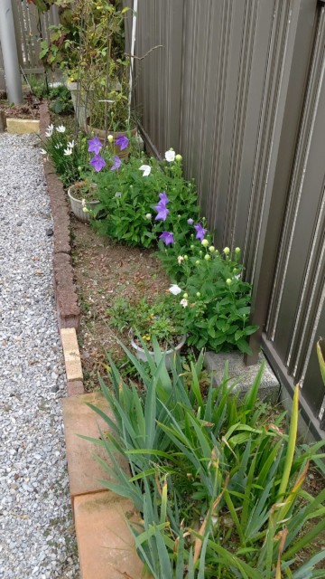 駐車場の花壇と裏庭 脇の通路に花が咲き始めました。