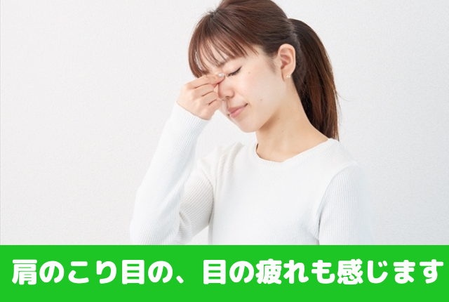 肩こりだけでなく、パソコンやスマートフォンの使用や加齢の影響かどうかは分かりませんが、目の疲れも感じます。